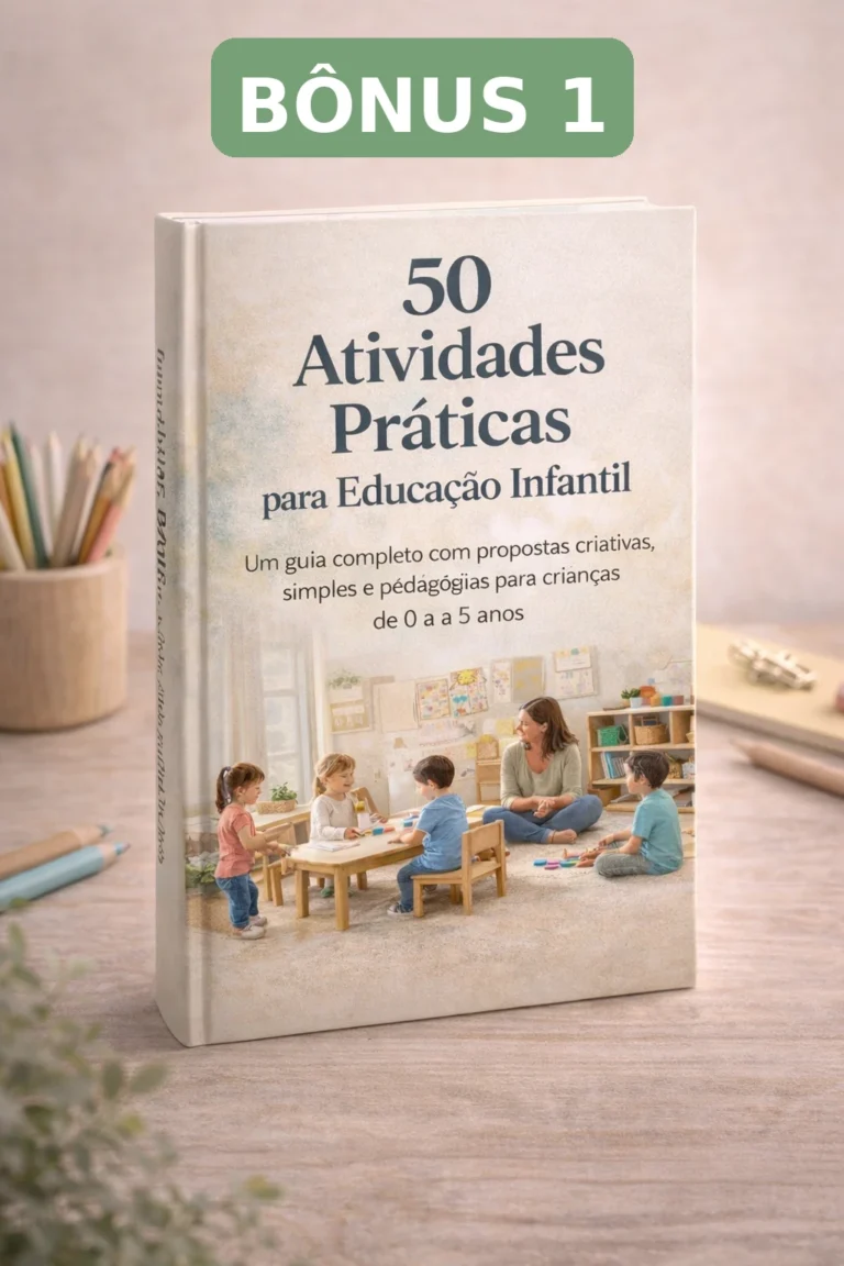 BÔNUS 1 - 50 Atividades Práticas para Educação InfantilUm guia completo com atividades criativas, simples e pedagógicas pensado para professores da educação infantil. Este material apresenta propostas práticas que estimulam o desenvolvimento cognitivo, social e motor das crianças de 0 a 5 anos, ajudando a tornar as aulas mais dinâmicas, organizadas e envolventes no dia a dia da sala de aula.