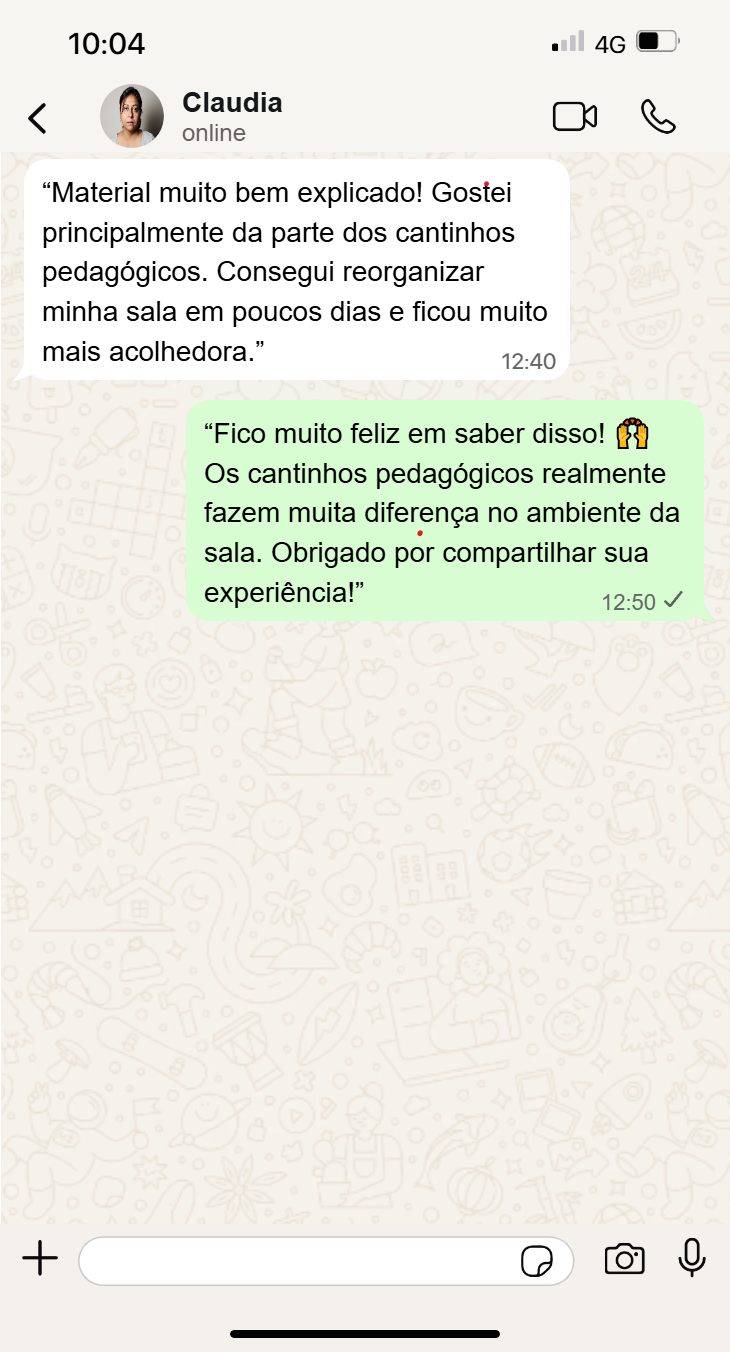 Desde as primeiras mudanças, você notará um ambiente mais organizado, crianças mais calmas e maior clareza nas atividades diárias. O espaço começará a favorecer o aprendizado, facilitando a concentração, a independência e uma rotina mais tranquila tanto para professores quanto para alunos.